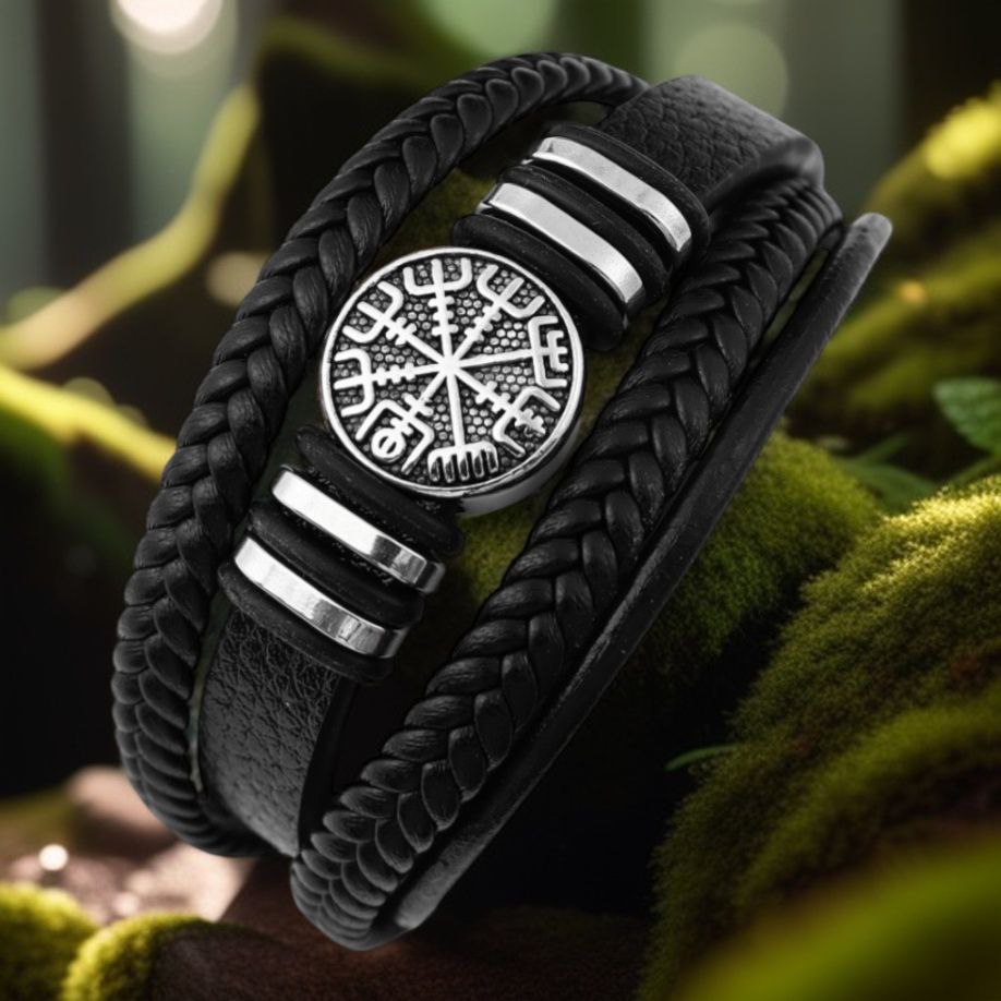 Скандинавський браслет «Вегвізир» — унікальна прикраса з глибоким символізмом. Він втілює силу скандинавських вірувань, захищає власника та вказує йому правильний шлях. Цей браслет виготовлений з багатошарової екокожі та має елемент з символом Вегвізира, виконаним з цинкового сплаву. Розмір браслета — 21,5 см, а зручний магнітний замок надійно фіксує прикрасу на зап’ясті. Давайте глибше розглянемо значення символу та особливості цього аксесуара.